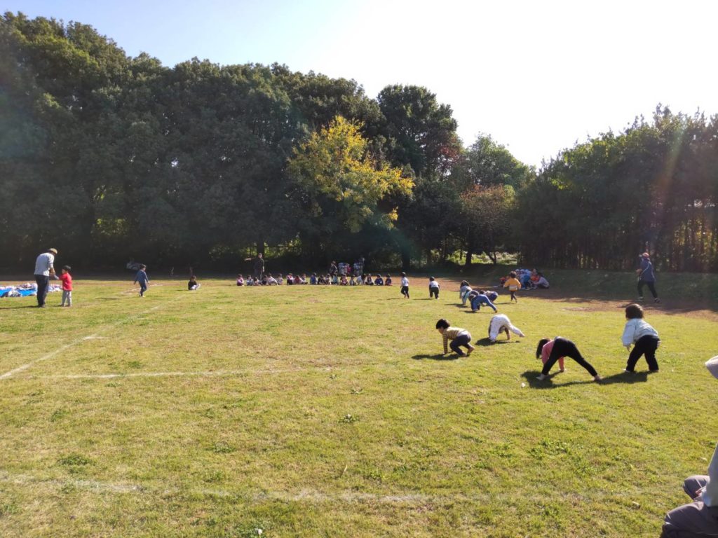 さわやかな秋空が広がっています。本日は運動会予行を行いました。広々としたグラウンドでのびのび体を動かして、力いっぱい走ったり、応援したりかわいらしい姿がありました。子どもたちの成長発達を喜び、確認しながら取り組んでいきます。本番は一週間後です。今日の練習を糧にして本番に向け気持ちが盛り上がっていくことと思います。