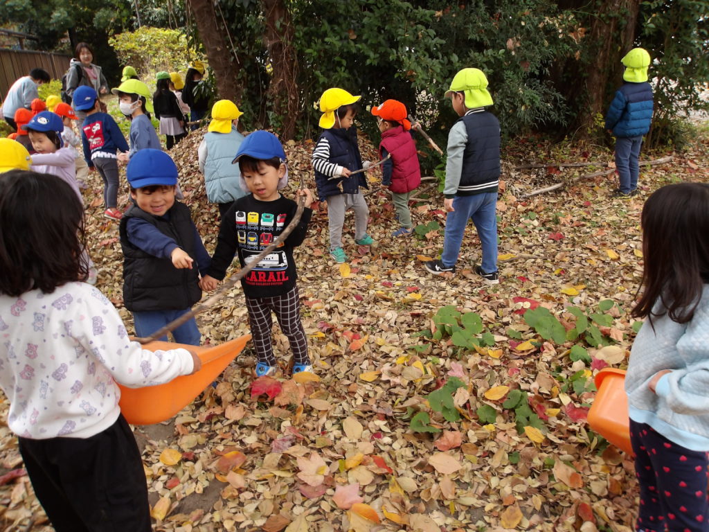 11/27(木)は焼き芋パーティでした。前日には、らいおん組ときりん組の子どもたちが芋を包む準備をしてくれました。「いよいよあしただね!」と楽しみにしている子がいて、ワクワクがとても伝わってきました。