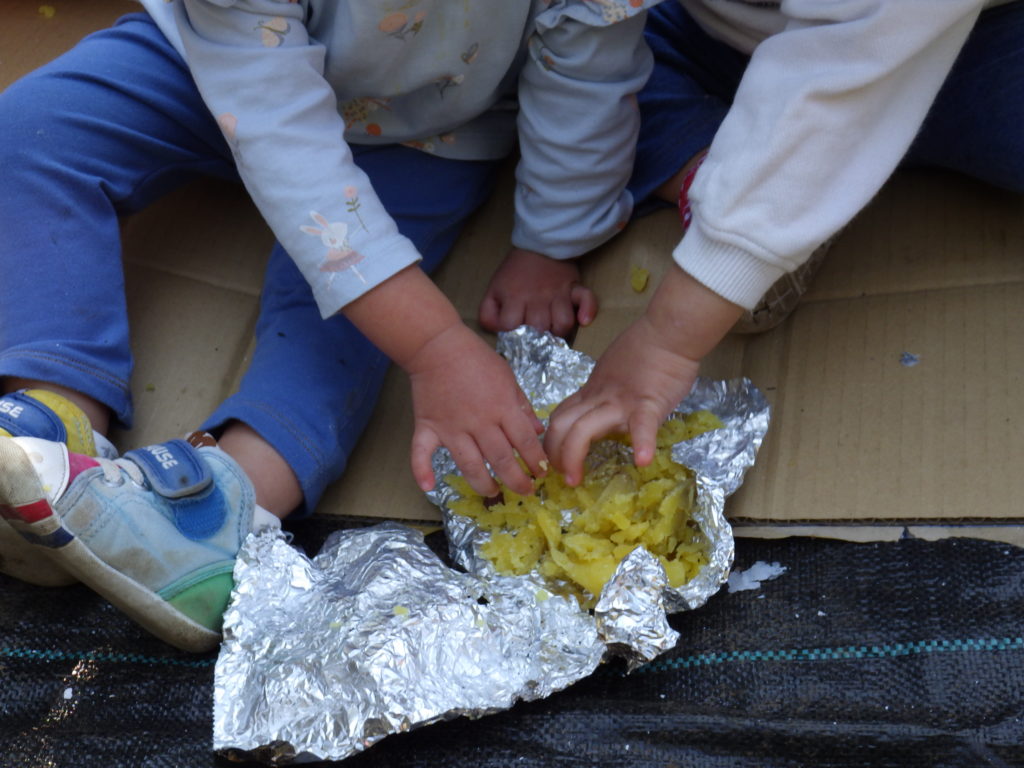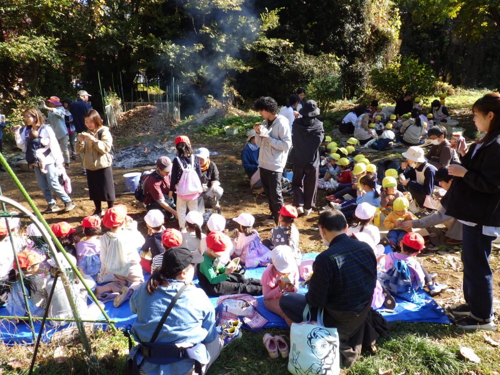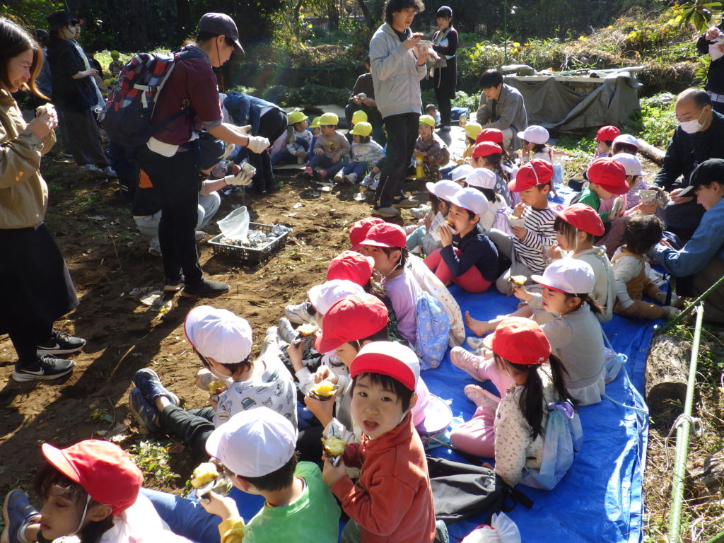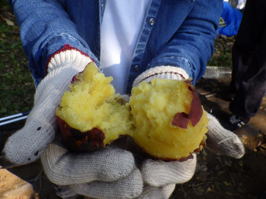 みんなでワイワイ、おいしい焼き芋を味わいました。