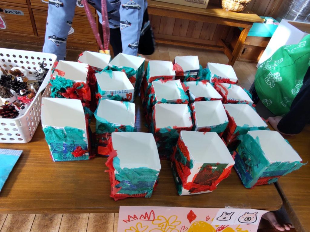 全クラスで発達に合わせた手作りの品物を製作し、年長・年中らいおん組がおみせやさんになり
