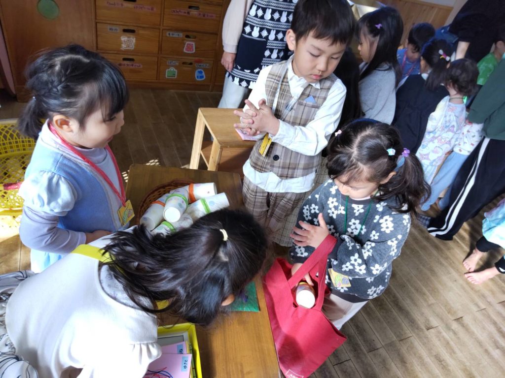工夫を凝らした温かい品物が並び、みな嬉しそうな表情で過ごしていました。近年は、キャッシュレス化し時代とともに進化しているお店屋さんごっこです。