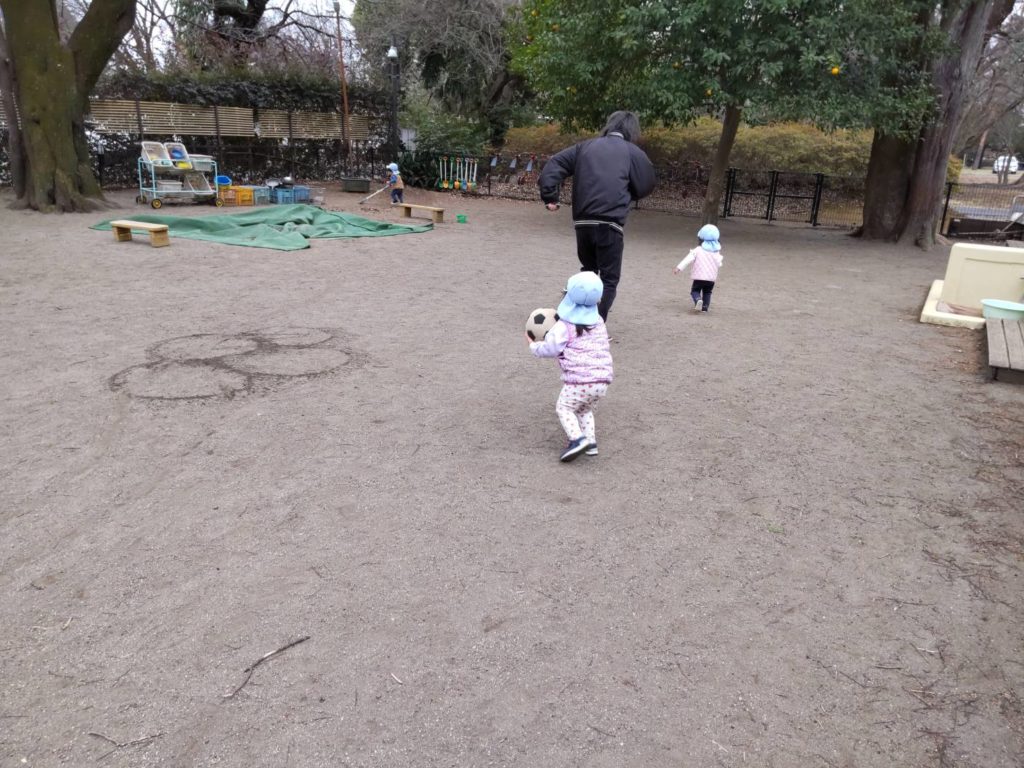 りす組は、寒さに負けず、園庭でボール遊びや追いかけっこ、砂場など自分の好きな遊びをじっくり楽しんでいました。‘’いま、したいことを満足するまでする。あそぶ”事は、とても大切ですね。