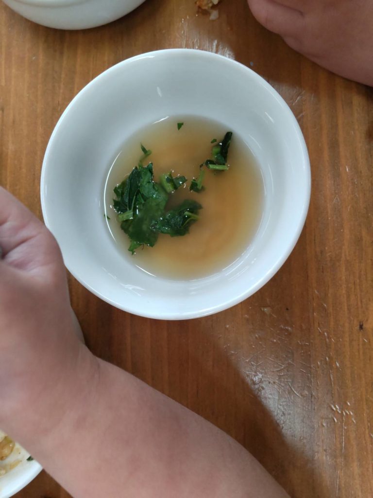 昼食では、カレーに添える子、みそ汁に入れる子、おかわりする子、普段野菜は少々気が進まない子もぺろりと食べる子もいました。