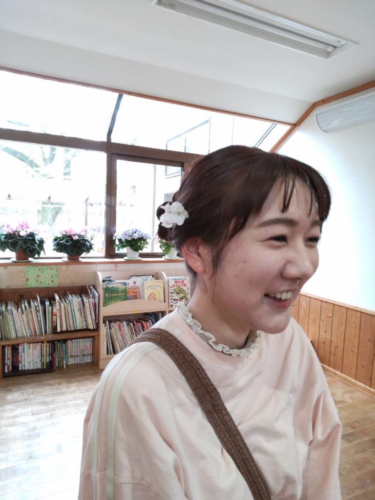 職員も子どもにさくらの花をつけてもらっていてかわいかったので写真に撮りました🌸