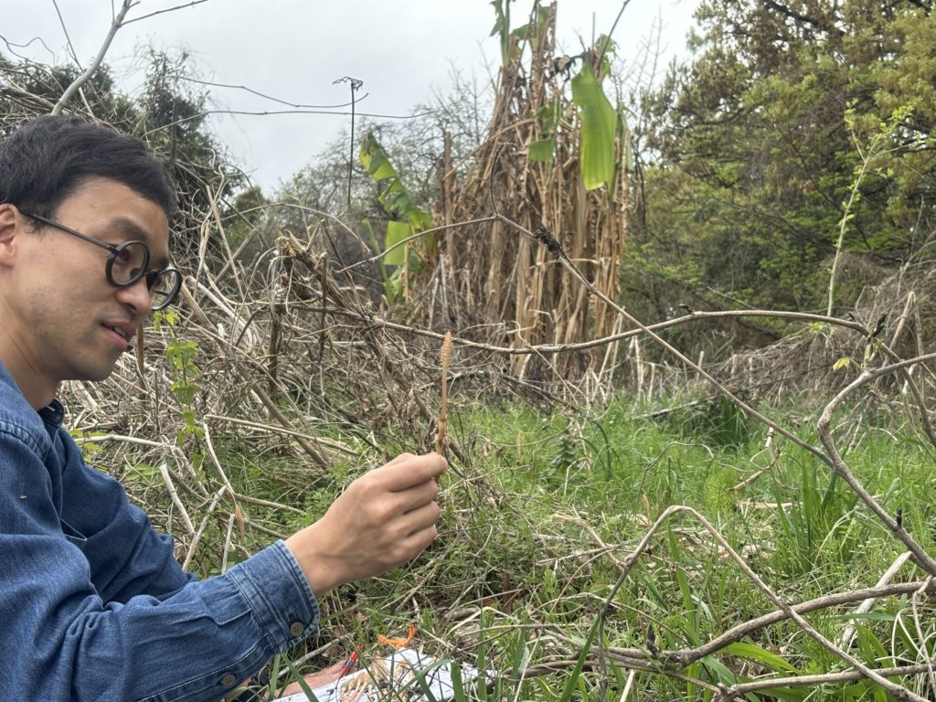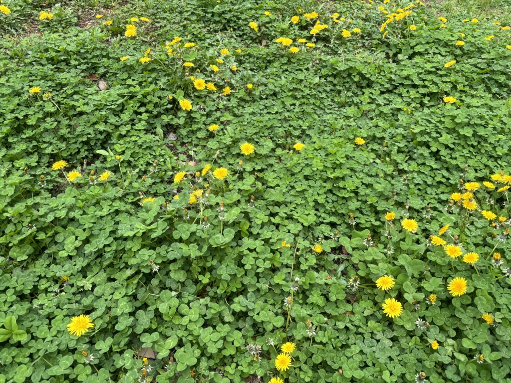 ↑ぷくぷくに膨らんだ立派な『つくし』を嬉しそうな表情で見つける主任👨と、辺り一面のタンポポの花。