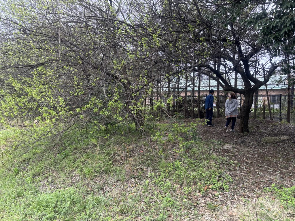 むさし保育園の子どもたちの散歩コースは、センター内の豊かな自然に恵まれた環境の中にあります。その散歩コースを乳児リーダー、主任、園長で見回り確認に行きました。