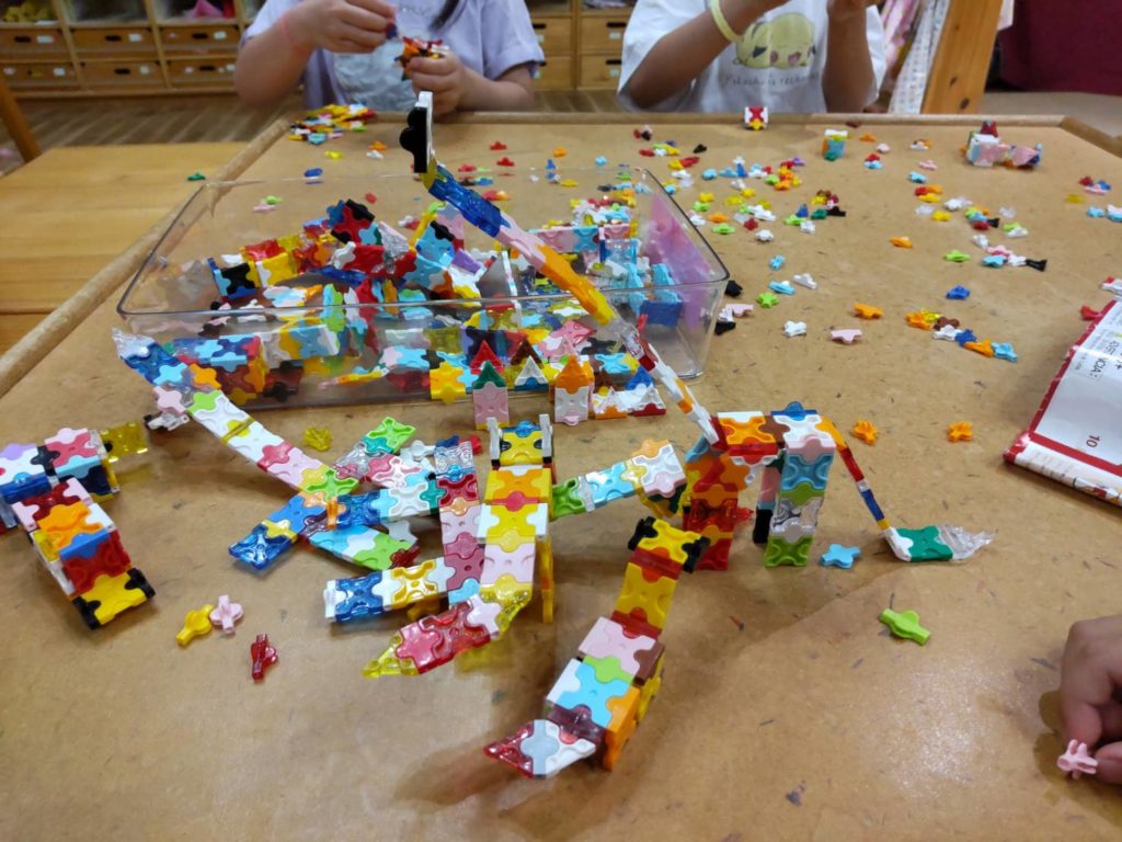 夕方保育中らいおん組(年中・年長)の子どもが、ラキューの作品がたくさんできたからぜひブログにのせて😊と教えてくれたので紹介します。