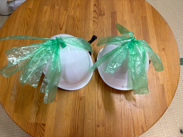 2025.05.22楽しみにしていた梅の実を、らいおん組さんが採りに行きました。 こんなにきれいで大きな実! シートを敷いて、大人が高枝切りばさみで実を落としていきます。子…